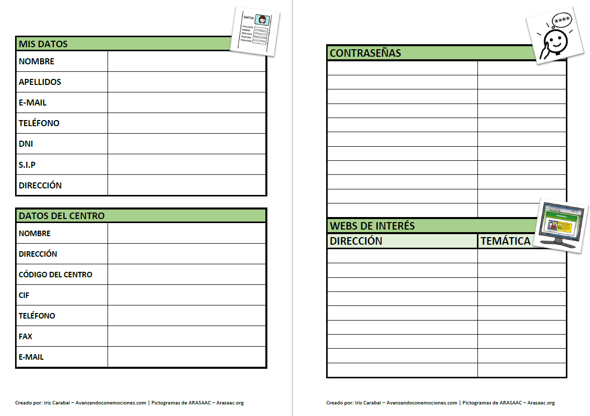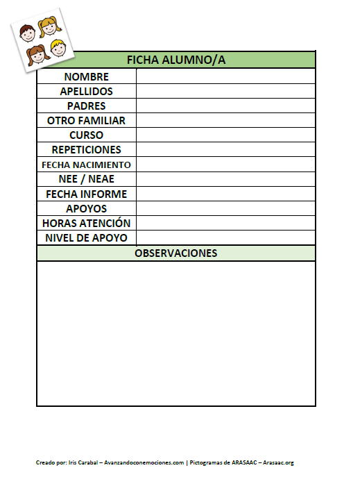 Comparto con vosotros el cuaderno que he creado para llevar un seguimiento de mi trabajo como PT. Creo que es un tipo de cuaderno que también puede ser útil para los especialistas de AL. Este material está todo en PDF. Antes de imprimir, os recomiendo que leáis muy bien el documento con las instrucciones. En ese documento os doy algunas pautas para crear vuestro propio cuaderno a partir de los documentos que os facilito de libre descarga. Además, incluye varios modelos de portada en función de género y especialidad (PT o AL) con diversos modelos de pictograma.