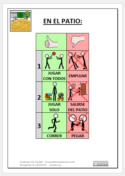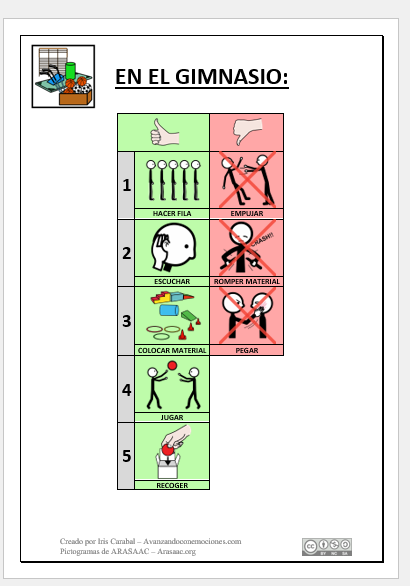 En este documento encontraréis ejemplos de conductas adecuadas o inadecuadas para los diferentes espacios de la escuela. Es un modelo totalmente editable en función de las necesidades de cada uno. Es importante tener en cuenta el tipo de conductas que queremos reconducir, reforzar o enseñar, para realizar en adelante los diferentes ajustes del documento. También cabe la posibilidad de necesitar crear tablas nuevas para otros espacios del centro: aseos, aula de música, pasillos, etc.